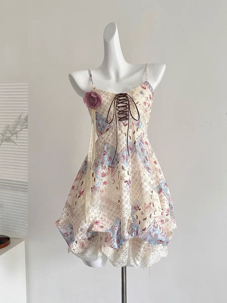 Unique A Line Spaghetti Straps Chiffon Printed Lace Short Prom Dress,Homecoming Dress,Birthday Dress GG3390