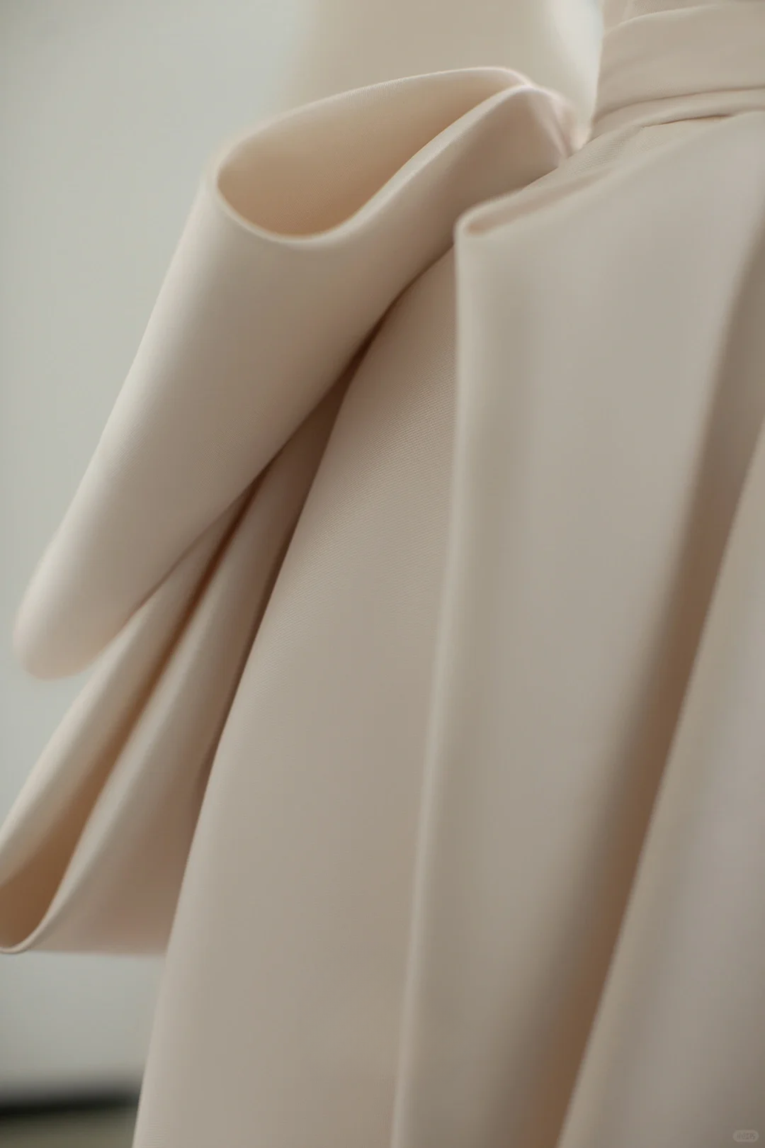 Unique Ball Gown V Neck Light Champagne Satin Lace Long Wedding Dress GG2990