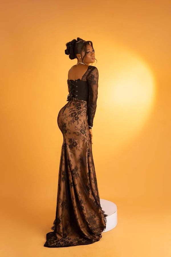 Unique Mermaid Satin Lace Applique With Long Sleeves Long Prom Dress, Party Dress, Evening Dress GG2500