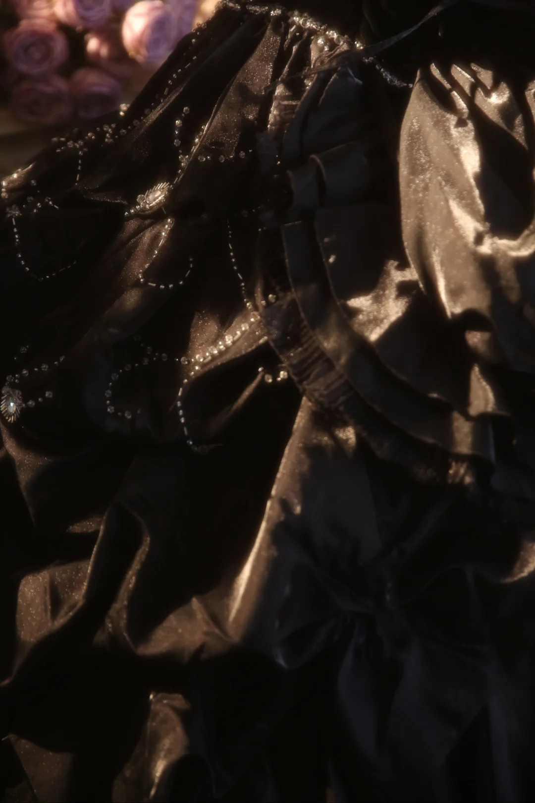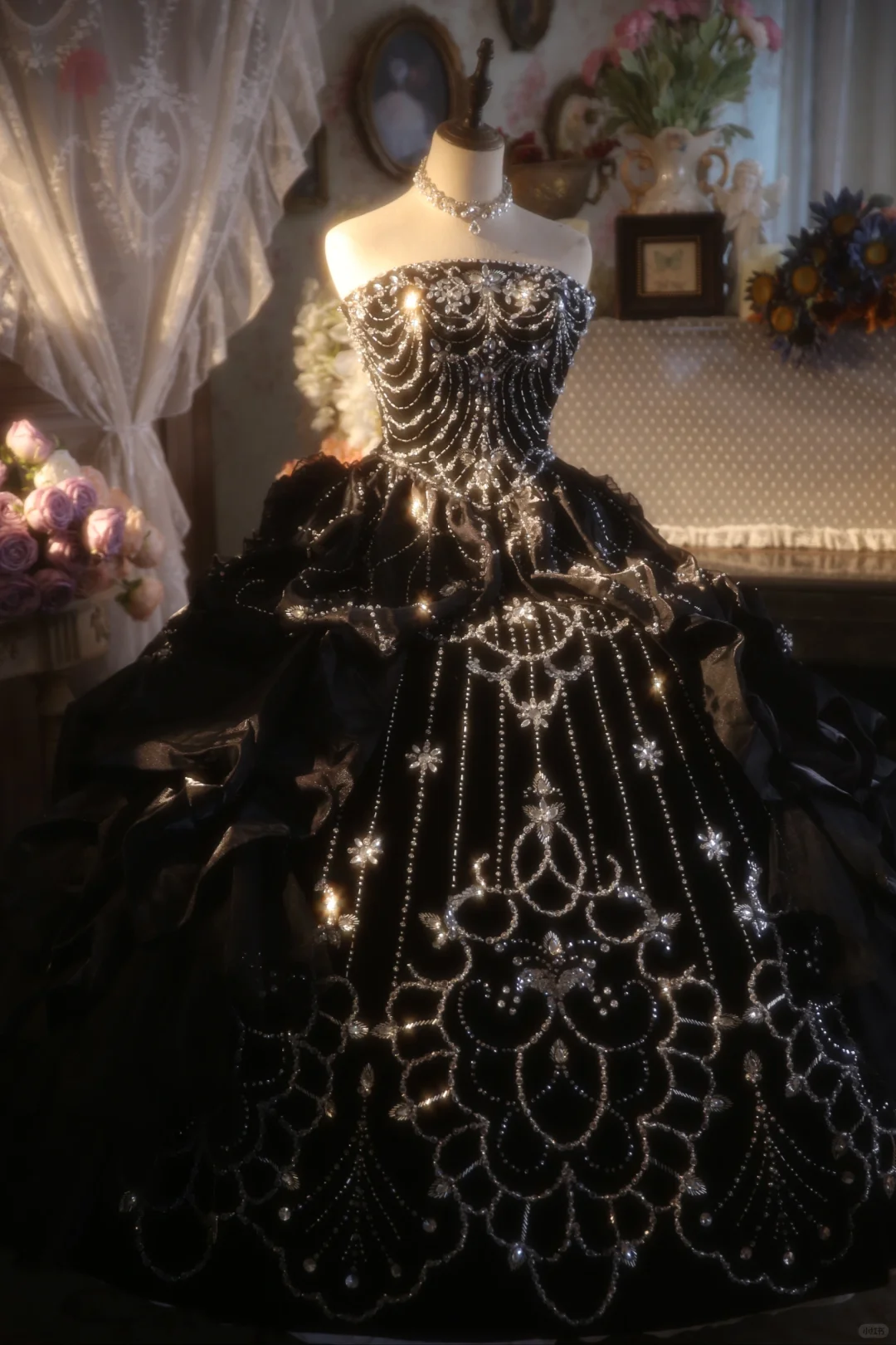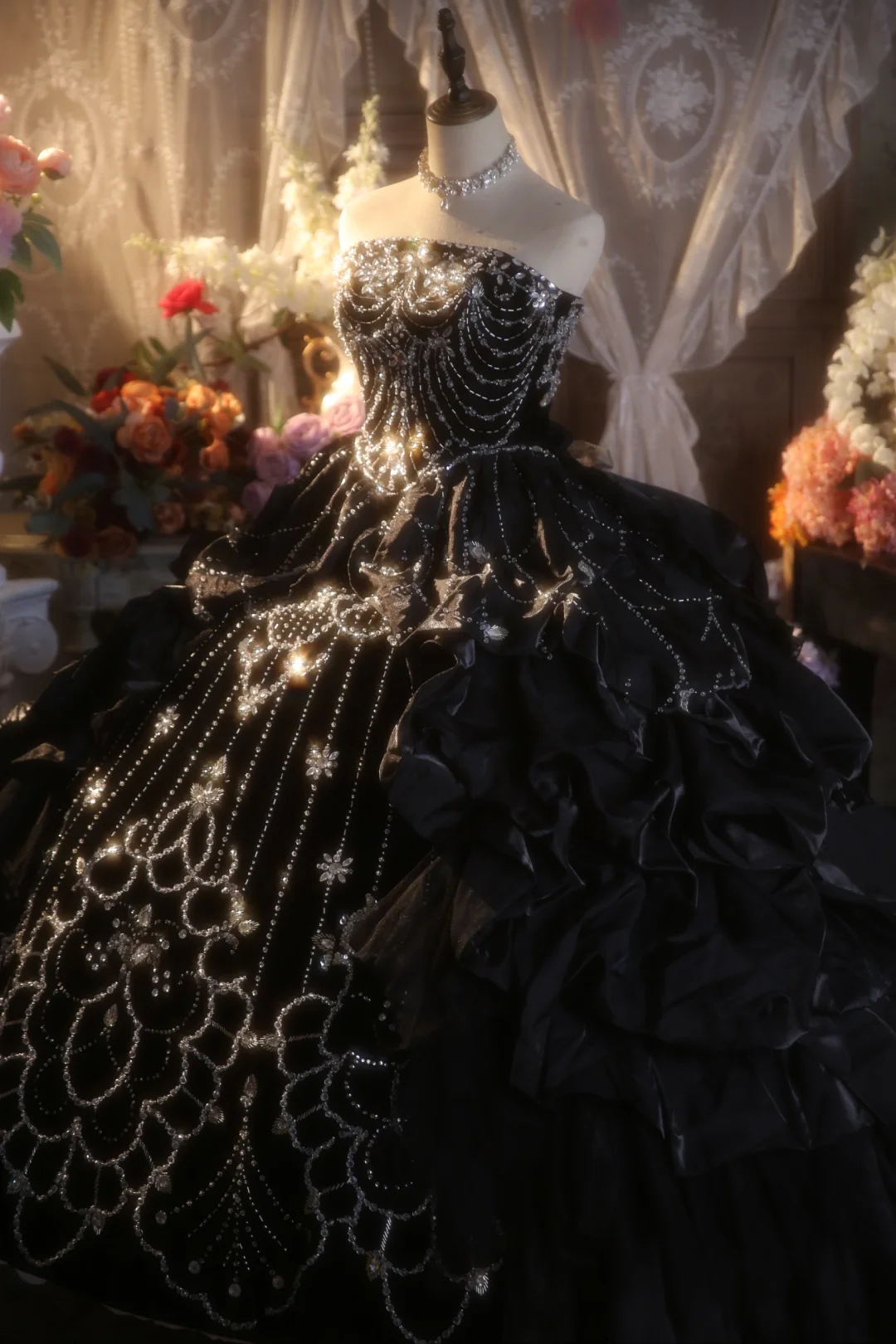 Vintage Ball Gown Strapless Black Satin Beaded Long Prom Dress, Party Dress, Evening Dress GG2877