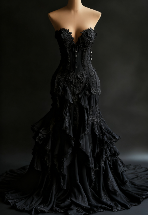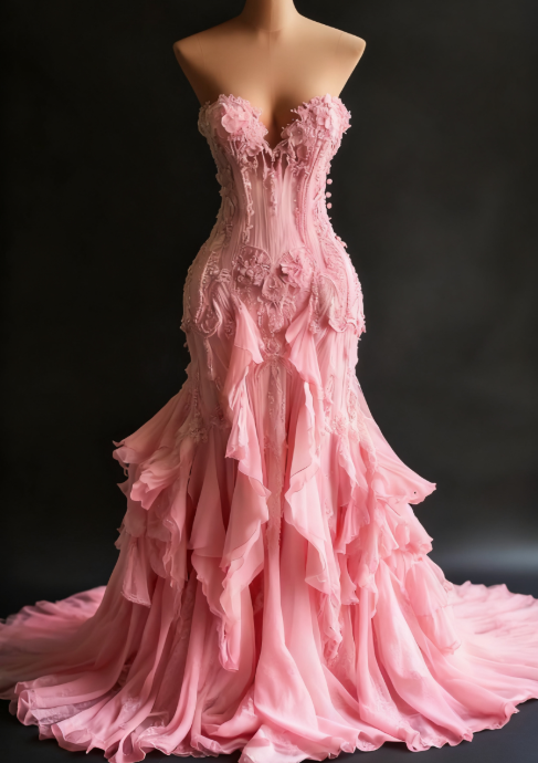 Vintage Mermaid Strapless Ivory Chiffon Tulle Long Prom Dress,Wedding Dress,Evening Dress GG1350